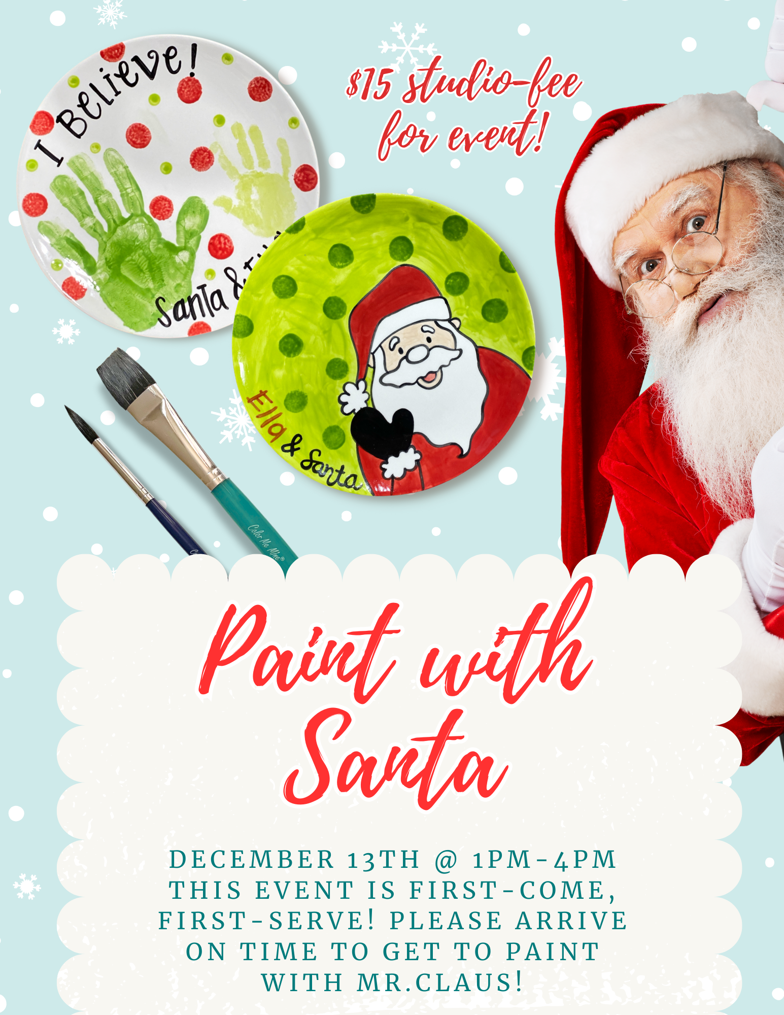 Santa is making a special stop at our studio on December 13th from 1–4pm, and he’s ready to paint, laugh, and spread some holiday cheer! Join us for this fun event where you can paint with Santa and create your own holiday masterpiece. We’ll have plenty of festive pottery pieces to choose from—perfect for gifts or keepsakes.